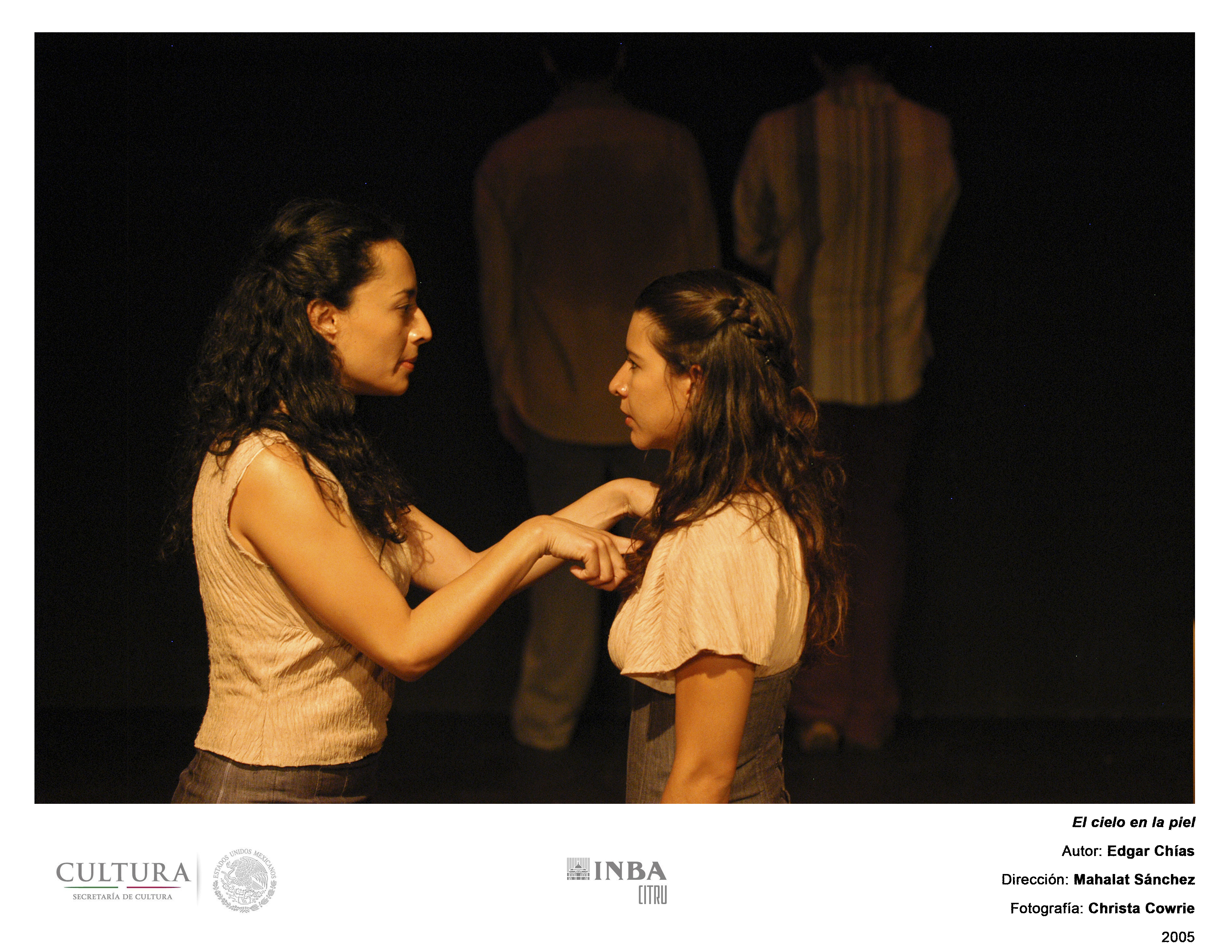 Abstract: OBRA: El cielo en la piel. AUTOR: Edgar Chías DIRECTOR: Mahalat Sánchez. ESPACIO: Foro La Gruta. FECHA: 14 de septiembre de 2005. REPARTO: Iván Cortés, Claudia Trejo, Alejandro Morales, Georgina Ságar.