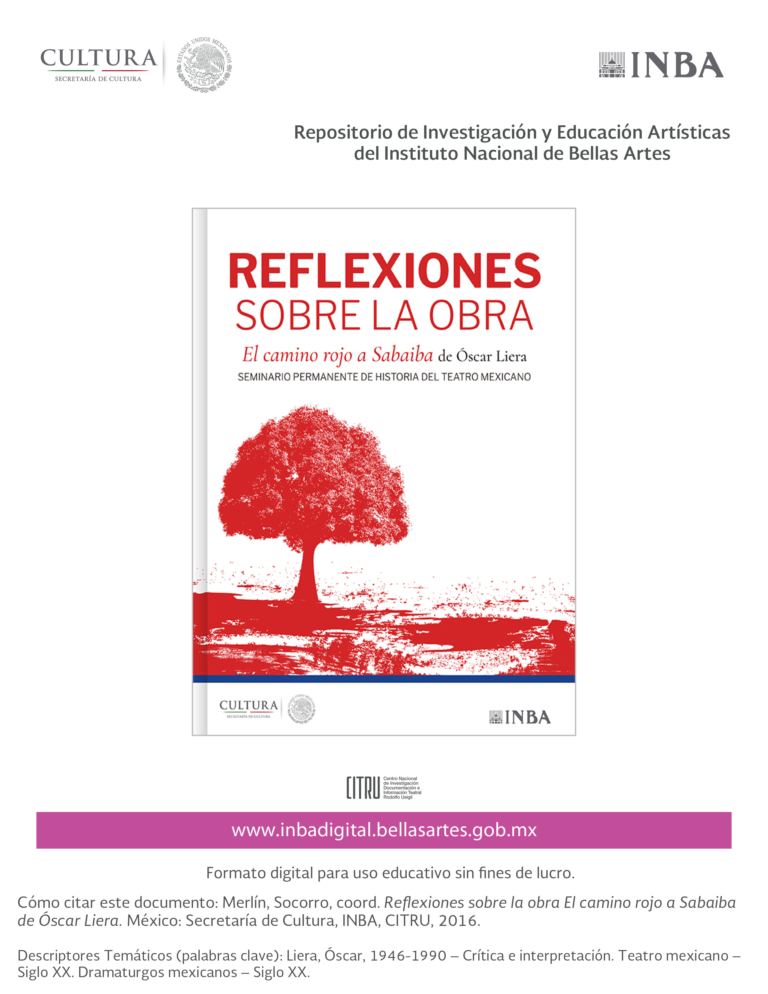 | Publisher: | Secretaría de Cultura, INBA, CITRU |